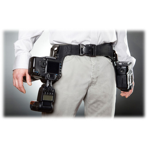 نگه دارنده SpiderPro Dual اسپایدر پرو هولستر مخصوص اتصال دو دوربین به کمر طراحی شده ،اسپایدر پرو به راحتی می تواند دو بدنه حرفه ای را به همراه لنز تله (مانند 200-70)نگه دارد.نکته اساسی این نگه دارنده،اتصال توپی دوربین به کمربند است که عکاس می تواند راحت تر در محل کار خود حرکت کند.مناسب برای دوربین های 2.5 کیلوگرم به بالا، سازگار با کمر های با اندازه 71 سانتی متر تا 127 سانتی متر