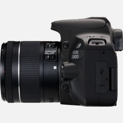 کیت دوربین عکاسی کانن Canon 200D به همراه لنز 55-18 اس تی ام دارای سنسور 24.2 مگاپیکسلی ،با فیلم برداری FULL HD با سرعت 60 فریم بر ثانیه ، دارای 9 نقطه فوکوس اتوماتیک ، دارای عکاسی با سرعت 5 فریم بر ثانیه ، با پردازشگر Digic 7 ، با دامنه حساسیت 12800 (افزایش یافته 25600 ) ، دارای قابلیت Wifi ،NFC،Bluetooth