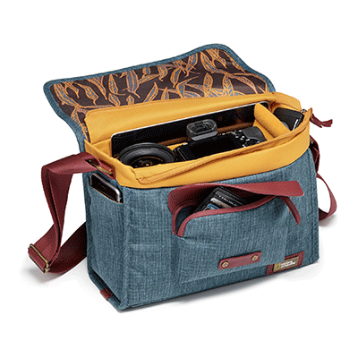 کیف شانه آویز مناسب برای یک دوربین DSLR کوچک با لنز متصل شده ویا یک عدد دوربین بدون آینه به همراه یک تا دو عدد لنز اضافی دارای محفظه ای برای تبلت ،شارژر و لوازم شخصی.