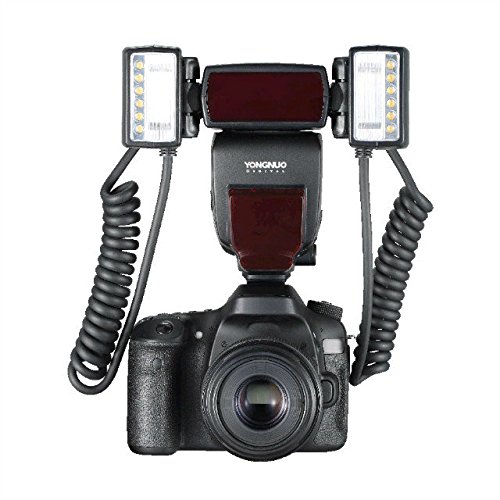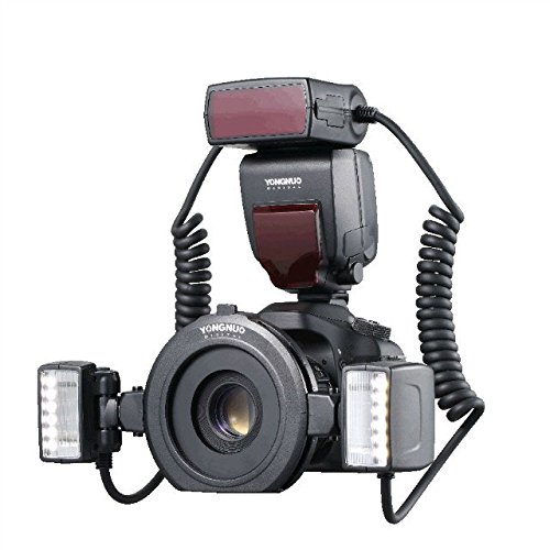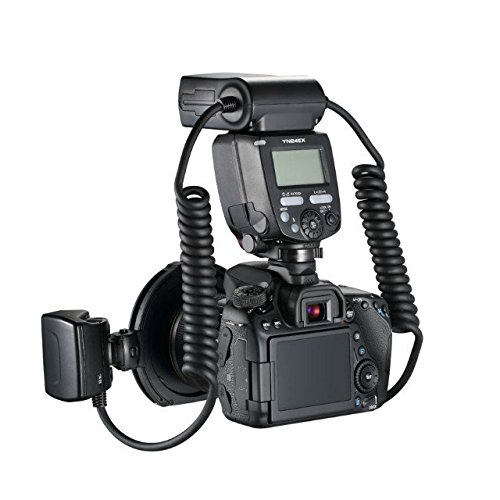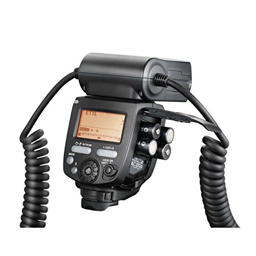 فلاش رینگی ماکرو مخصوص دوربین کانن سازگار با E-TTL و E-TTL II ،دارای دو فلاش با امکان تغییر جهت، عدد راهنما 26 متر در ایزو 100 ، با پوشش 90 درجه افقی و عمودی، دارای لامپ LED جهت کمک به فوکوس، با زمان بازیابی در قدرت کامل با زمان 3 ثانیه، دارای رینگ اتصال به لنز برای دهانه های 52،58،67،72 میلی متر ، با منبع تغذیه 4 عدد باتری قلمی، به همراه کیف مخصوص.