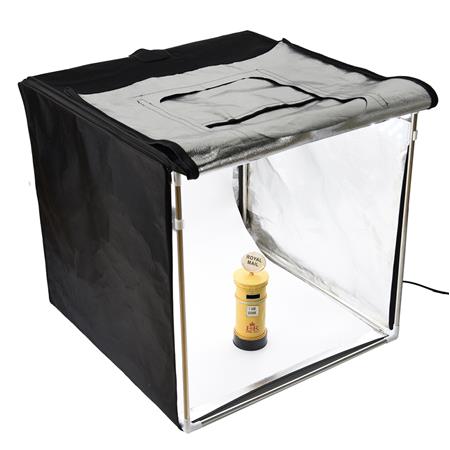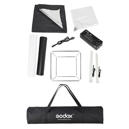 خیمه ال ای دی دار 60 سانتی متر گودکس با قابلیت حمل و راه اندازی سریع، مناسب برای عکاسی ماکرو و عکاسی از محصولات با راه اندازی آسان با قابلیت تنظیم میزان روشنایی نورها (دیمر کنترل کننده ) به همراه دو ردیف نور ال ای دی با قابلیت تنظیم آزادنه حرکتی به همراه پارچه دیفوزر، با CRI>96 و به همراه کاور حمل