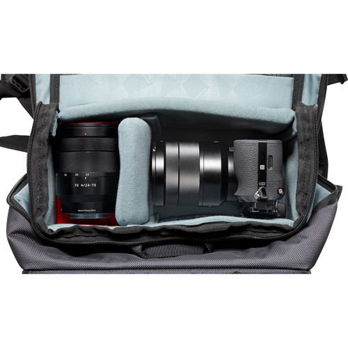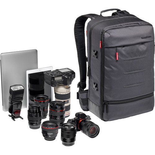 کیف کوله پشتی مانفروتو مدل MN-BP-MV-50 مناسب برای یک دوربین بدون آینه یا یک دوربین DSLR با لنز متصل شده از قبیل لنز 200-70 میلی متر ، 4 عدد لنز اضافی و فلاش اکسترنال، یک لپ تاپ تا سایز 15.6 اینچ و لوازم جانبی ، دارای نگه دارنده سه پایه و به همراه کاور باران