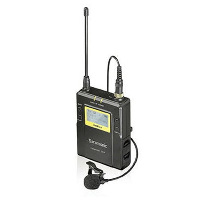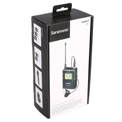 میکروفن فرستنده سارامونیک مدل UwMic9 TX9 به همراه میکروفن یقه ای که سازگاز با گیرنده های سارامونیک RX9 می باشد. لازم یه ذکر است که این گیرنده ها را یاید به صورت جداگانه تهیه شود.