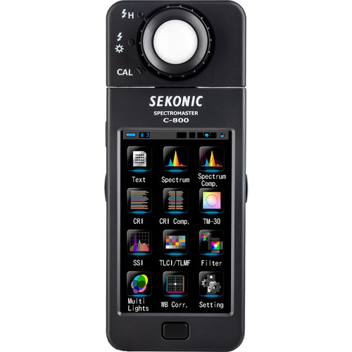 کالرمتر سکونیک C-800 SpectroMaster Color Meter از Sekonic برای عکاسان ، فیلمبرداران و تصوير برداران سينما و دستياران نور پردازي در نظر گرفته شده است به طوريکه قادر به خواندن تقریباً همه منابع نور اعم از LED ، فلش ، لامپ های رشته ای، HMI، فلورسنت یا طيف نور طبیعی است. مهمتر از همه، این یک ابزار روشنایی کاربردي است که منبع نور را با استفاده از 11 حالت مختلف نمایشگر در صفحه لمسی رنگی 4.3 اینچی آنالیز می کند و به طور مشخص نشان می دهد که برای رسیدن به اثر دلخواه خود چه کاری باید انجام دهید. سنسور meter's CMOS اندازه گیری را با دقت 1 نانومتر امکان پذیر می کند و امکان ضبط لکه های رنگی را در خروجي نور فراهم می سازد که اين یک عملکرد ویژه با ارزش هنگام کار با LED ،HMI، نور فلورسنت و منابع مختلط است.