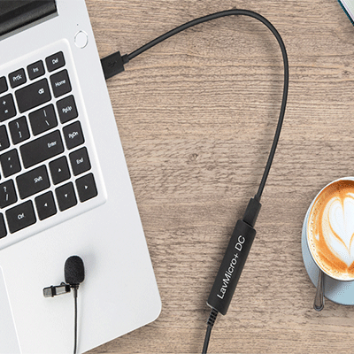 میکروفون يقه اي Saramonic LavMicro + DC یک میکروفون يقه اي است که دارای سه کابل خروجی قابل جدا شدن برای دستگاه های iOS، Android و رایانه های Mac یا PC ، دارای جک خروجی هدفون به و چرخ کنترل سطح ورودی