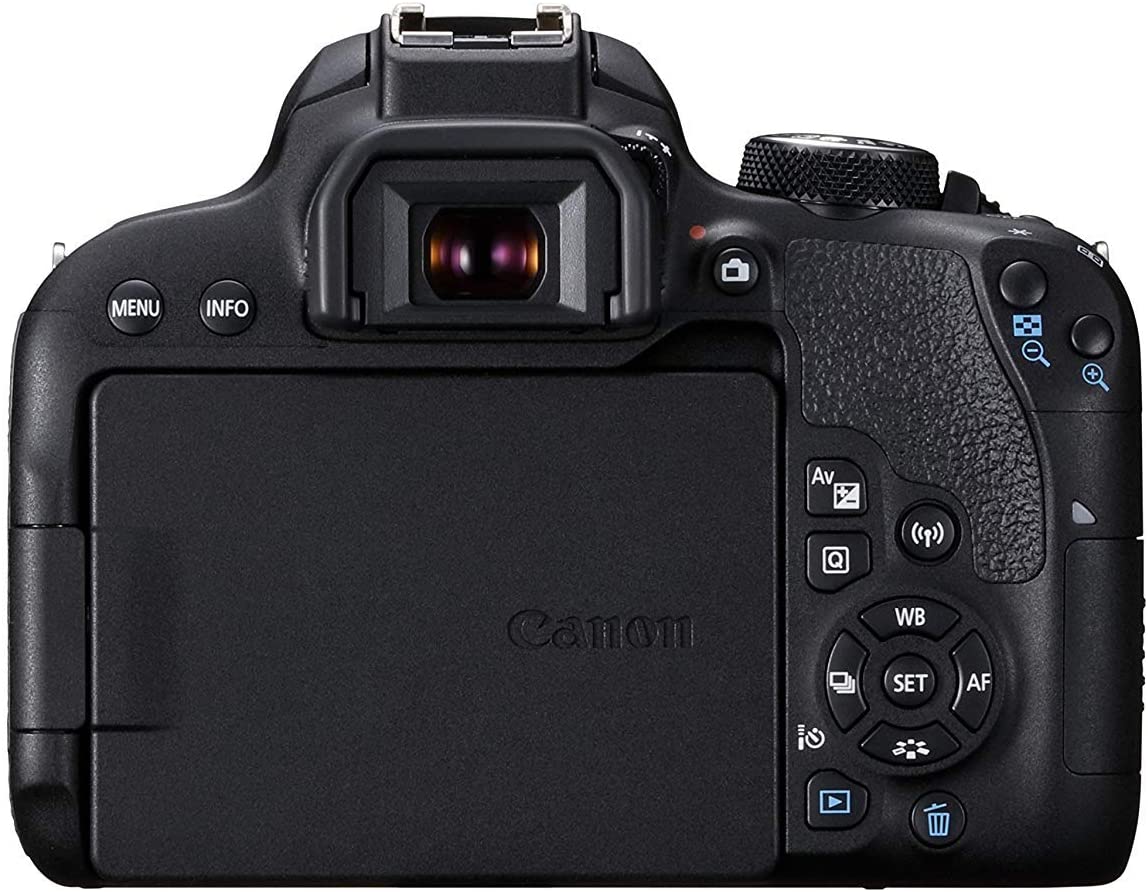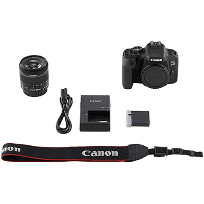 کیت دوربین عکاسی کانن Canon EOS 800D With 18-55mm IS STM، با سنسور 24.2مگاپیکسلی، دارای 45 نقطه فوکوس، با قابلیت اتصال از طریق Wifi ,NFC، Bluetooth، با صفحه نمایش متحرک 3 اینچ لمسی چرخشی، کیفیت فیلمبرداری FULL HD با سرعت 60 فریم بر ثانیه با قابلیت اتوفوکوس در هنگام فیلم برداری، دارای عکاسی پی در پی با سرعت 6 فریم بر ثانیه