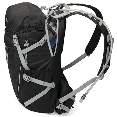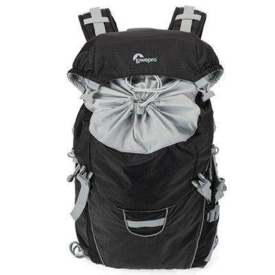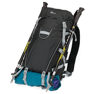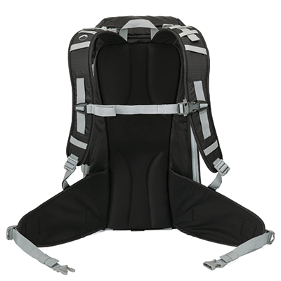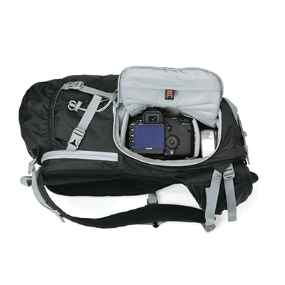 کوله پشتی زیبا و سبک دارای فضا برای یک دوربین DSLRحرفه ای با لنز متصل شده f/2.8 300 mm و 1 فلش ،لوازم جانبی(کارت حافظه، کابل، باتری، شارژر) ،نگه دارنده سه پایه وکاور باران و فضا برای لوازم شخصی.