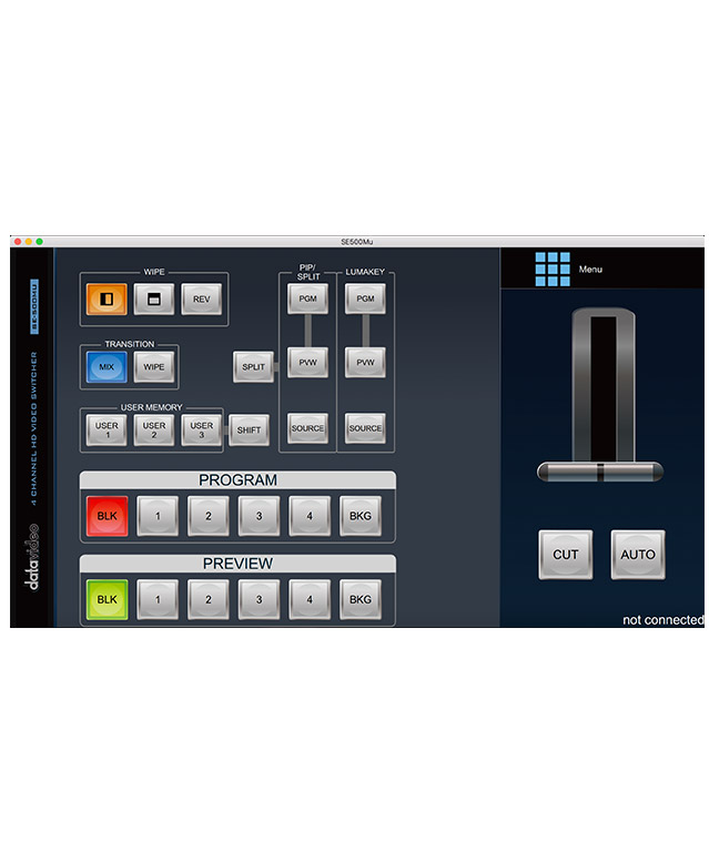 سوئیچر دیتاویدئو Datavideo 4 Input Video Switcher SE-500MU، دارای Scaler داخلی به منظور دریافت ورودی های با رزولوشن مختلف. کنترل آسان توسط اپلیکیشنهای در دسترس برای سیستم عامل های ویندوز، Mac، Ios و اندروید. دارای پورت کنترل IP یا RS-232. دارای صفحه تقسیم شده خروجی PGM – برای برنامه های Webinar یا آموزشی. تا 3 سال گارانتی درصورت ثبت