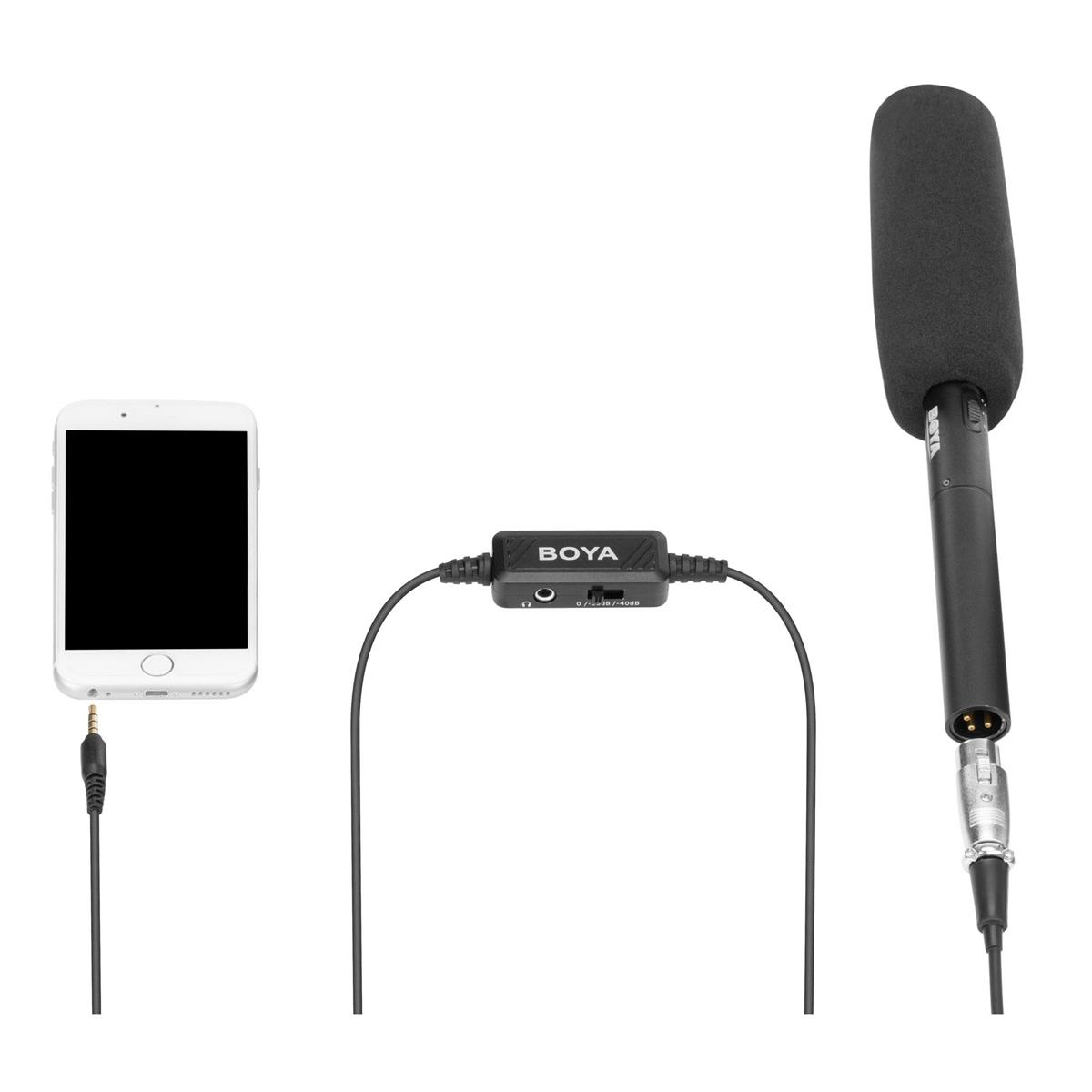 کابل 6 متری بویا مدل BOYA BY-BCA6 جهت اتصال میکروفن های با مانت XLR به تلفن های هوشمند و تبلت ها بدون نیاز به باتری مناسب است. این کابل و مبدل بویا سازگار با سیستم iOS مثل دستگاههای Pod ،iPhone و iPad، تلفن های همراه و تبلتهای اندرویدی و دستگاه هایی که دارای جک یکسان دارند میباشد. از ویژگیهای مبدل BOYA BY-BCA6، قابلیت تنظیم 3 موقعیت 0، منفی 10 و منفی 40 دسی بل و همچنین دارای خروجی هدفن جهت مانیتور کردن صدا است.