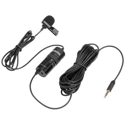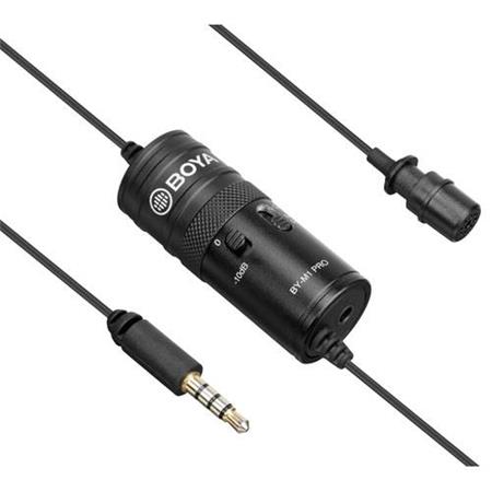 میکروفن یقه ای بویا BY-M1 Pro سازگار با تلفن های هوشمند، لب تاپ، دوربین ها، رکوردرها. در بدنه ی جمع و جور آن، دارای سوئیچ پد 10- دسی بلی (هنگامی که صدای سوژه بسیار بلند و نزدیک به میکروفون) دارای خروجی جک هدفون جهت مانیتور کردن صدا، دارای کابل 6 متری