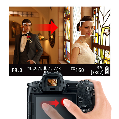 Dual Pixel CMOS AF عملکرد فوکوس روان و سریع را به شیوه ای مشابه با نحوه ی فوکوس کردن دوربین فیلم برداری ارائه می دهد. این سیستم دو فتودیود مجزا را در هر پیکسل ادغام میکند تا یک شبکه ی گسترده و متراکم از 5655 عنصر جمع آوری تشخیص فاز را در اکثر سنسور تصویر فراهم کند تا برای کنترل سریع تر و مستقیم تر قرار دادن فوکوس از گم کردن فوکوس جلوگیری کند. هنگام عکاسی، این سیستم فوکوس برای به دست آوردن فوکوس سریع و دقیق کار می کند و آن را برای عکاسی و ردیابی سوژه های متحرک ایده آل می کند تا فوکوس مناسب در هر عکس به دست آید. هنگام فیلم برداری، حالت Movie Servo AF فوکوس ملایم و طبیعی را هنگام تغییر از سوژه های مختلف یا فواصل مختلف در صحنه، و همچنین توانایی تعیین حساسیت ردیابی، سرعت AF و اولویت ردیابی چهره را ارائه می دهد. با بهره مندی از سیستم فوکوس خودکار لمسی، فوکوس rack یا جابجایی وضوح به سادگی با لمس عناصر داخل صحنه روی صفحه ی لمسی امکان پذیر است تا فوکوس را به شیوه ای بصری تغییر دهید.