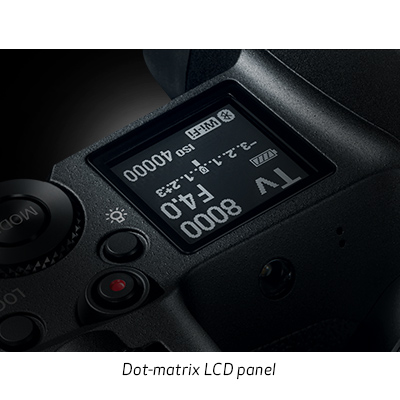 پنل بالایی دارای یک LCD ماتریس نقطه ای است که دسترسی سریع به تنظیمات مهم دوربین را فراهم می کند.