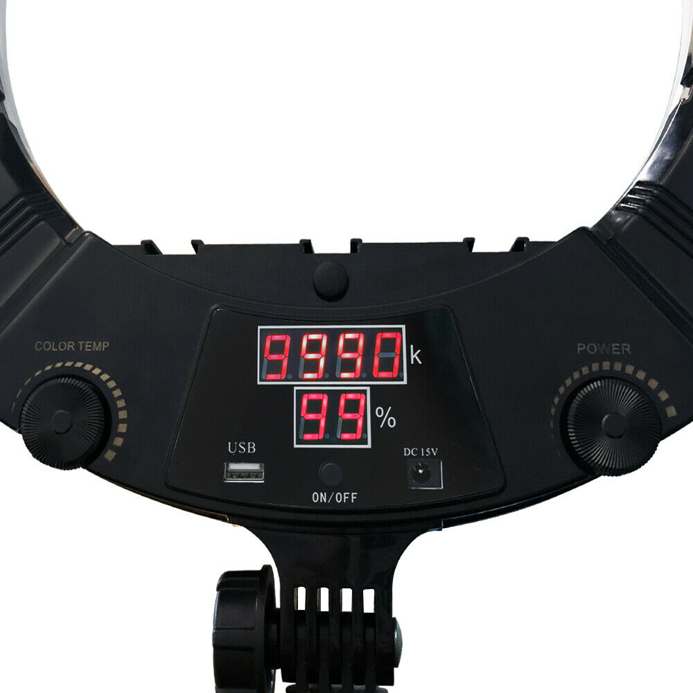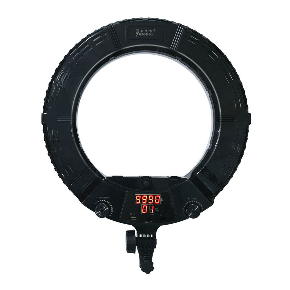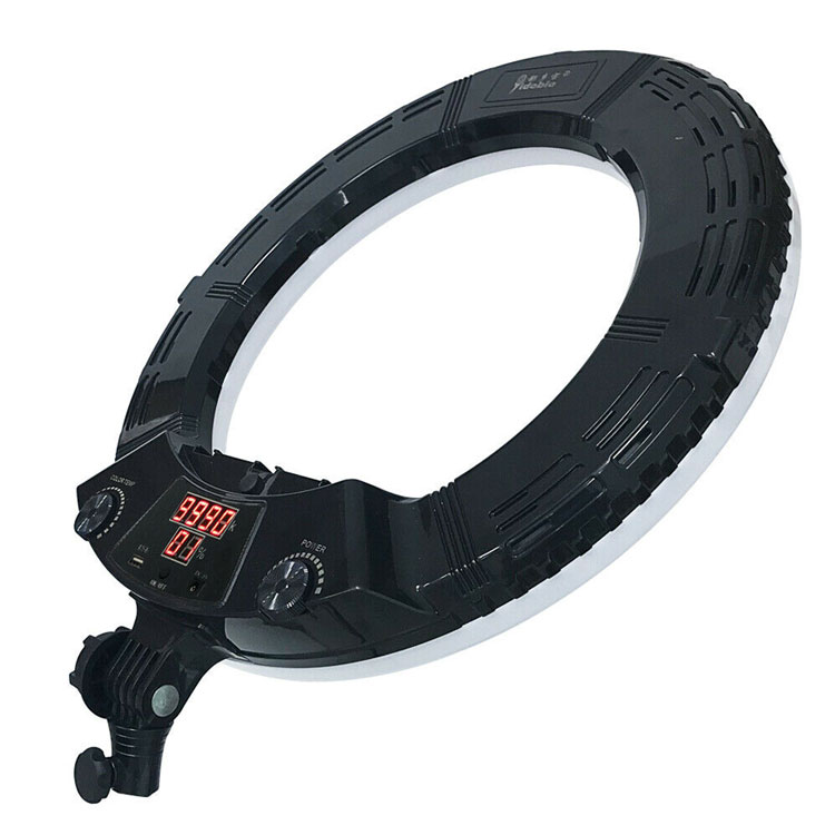 رینگ لایت Yidoblo مدل رینگ لایت QS-480DII با قدرت 96 وات ، با 9600 لومن ، با قابلیت تغییر روشنایی( از 0 تا %99 ) و میزان کلوین از 2800 تا 9900 ، دارای CRI>95 ، دارای 480 عدد ال ای دی ، با قطر خارجی 45 سانتی متر ، قطر داخلی 30 سانتی متر ، دارای اپلیکشن مخصوص موبایل ، پورت USB جهت شارژ موبایل ، به همراه کیف، هولدر نگه دارنده ، آینه مخصوص و آداپتور برقی مستقیم ( امکان استفاده از طریق 2 عدد باتری سری 970 سونی که به صورت جداگانه باید تهیه شود)