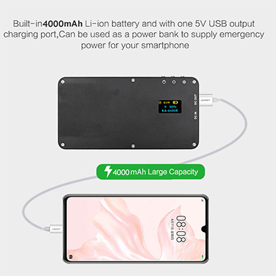 دارای باتری لیتیومی داخلی 4000 میلی آمپری که از طریق پورت USB تایپ C (کابل همراه می باشد) قابل شارژ است و همچنین از طریق خروجی پورت USB می توان از آن به عنوان پاور بانک جهت شارژ موبایل استفاده کرد
