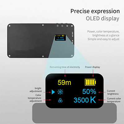 نور ثابت ال ای دی دی بی کی مدل DBK RGB135 با طراحی بسیار کوچک که به راحتی در جیب قرار می گیرد با قدرت خروجی 10 وات و روشنایی 1200Lux 0.5 با دمای کلوین 3200 تا 5600 ، با قابلیت تغییر رنگ های متنوع از 0 تا 360 ، امکان کنترل میزان روشنایی نور از 0 تا 100 درصد ، با CRI>96 LD FHAN