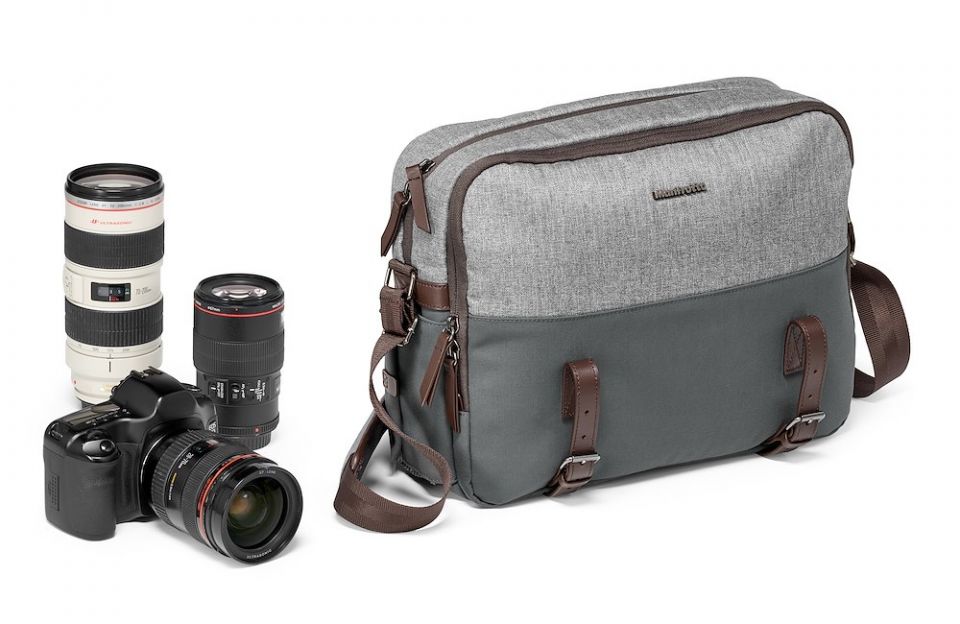 کیف شانه آویز مانفروتو Lifestyel Windsor Reporter مناسب برای یک دوربین DSLR به همراه دو لنز اضافی ، یا یک DJI Mavic Pro Combo kit و دارای فضایی برای لوازم شخصی ، لب تاپ تا سایز 13 اینچ و نگه دارنده سه پایه