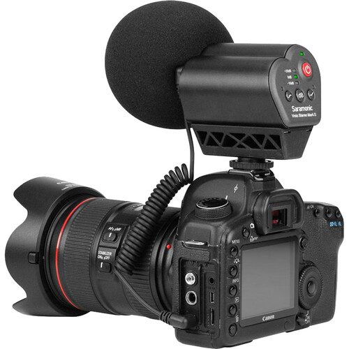 میکروفون کندانسور کامپکت و سبک Saramonic Vmic Stereo Mark II دارای ویژگی های کپسول های کاردیوئیدی دوگانه در آرایش X/Y، کنترل های onboard برای تنظیم سطح و صدا و نظارت مناسب بر هدفون می باشد و برای کمک به بلاگرها، تولیدکنندگان محتوا، روزنامه نگاران متحرک و فیلم برداران در حرکت طراحی شده است که باعث ایجاد صدای استریوی واقع گرایانه ی همه جانبه برای ویدئوهای آن ها می شود