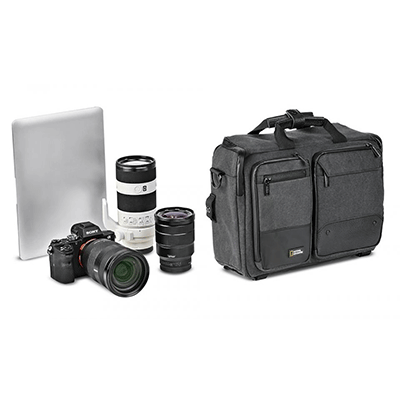 کیف نشنال جئوگرافیک NG W5310 قابل استفاده به عنوان کیف شانه آویز ، کیف دستی و کوله پشتی ، مناسب برای یک دوربین بدون آینه به همراه 2 یا 3 لنز اضافی ، دارای فضایی برای لب تاپ تا سایز 13 اینچ ، دارای نگه دارنده سه پایه به همراه کاور باران