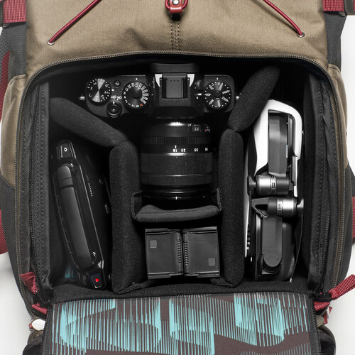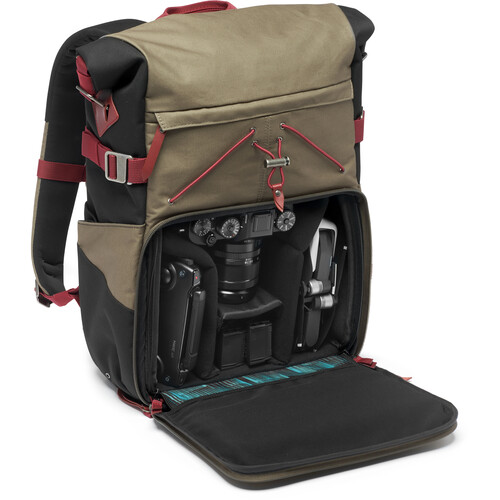 این کیف به سیستم محافظت Manfrotto مجهز است ، بنابراین لوازم شما همیشه از خراش و ضربه ایمن است و هنگامی که شما نیاز به استفاده از کوله پشتی به عنوان یک کیف کاربردی روزمره دارید، برای تبدیل آن به سادگی واحد دوربین را بردارید و با جدا کردن پیوست velcro ، فلپ های تقسیم را روی هم جمع کنید. همچنین فضای زیادی برای وسایل شخصی شما در محفظه ی جمع شونده ی بالایی وجود دارد.
