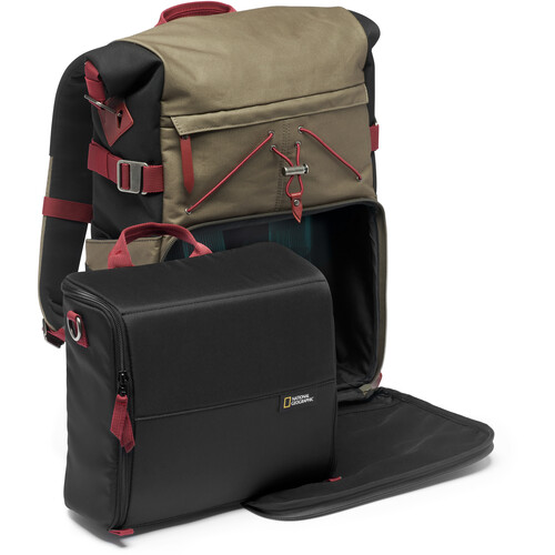 کوله پشتی نشنال جئوگرافیک NG IL 5050 مناسب برای یک دوربین بدون آینه به همراه لنز متصل یا 2 لنز اضافی ، یا یک drone کوچک ، مناسب برای یک لپ تاپ تا سایز 14 اینچ ، به همراه نگه دارنده سه پایه و کاور باران ، به همراه کیف شانه آویز با قابلیت جدا شدن از کوله جهت استفاده به صورت جداگانه و یا استفاده از کوله به عنوان کوله وسایل شخصی