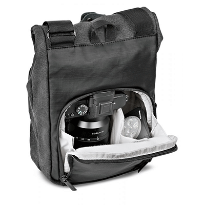 کیف شانه آویز Walkabout Vertical Reporter یک راه حل حمل و نقلی هوشمند و جمع و جور برای دوربین های کوچک بدون آینه شماست، مانند دوربین Olympus Pen Lite با 2 لنز اضافی یا یک دوربین CSC ممتاز تر مانند Sony Alpha 7. همچنین دارای یک محفظه ی پشتی برای آیپد های 9.7 اینچی شما است. این کیف به سیستم محافظت Manfrotto مجهز است، بنابراین لوازم جانبی شما همیشه از خراش و ضربه ایمن هستند. یک محفظه زیپی در نزدیکی بدن شما در پشت کوله پشتی پنهان شده است، تا حداکثر امنیت را برای لوازم جانبی ارزشمند دوربین شما فراهم کند. در داخل آن، پد های جداکننده ی قابل جا به جایی را مشاهده خواهید کرد که به طور موثر دوربین و تجهیزات دیگر را در جای خود قفل می کنند. فضای زیادی برای وسایل شخصی شما در قسمت بالایی وجود دارد و یک درب رولی و جیب پانل جلویی چند زیپه، لوازم جانبی اضافی، کیف پول، تلفن همراه و غیره را در خود جای خواهد داد.