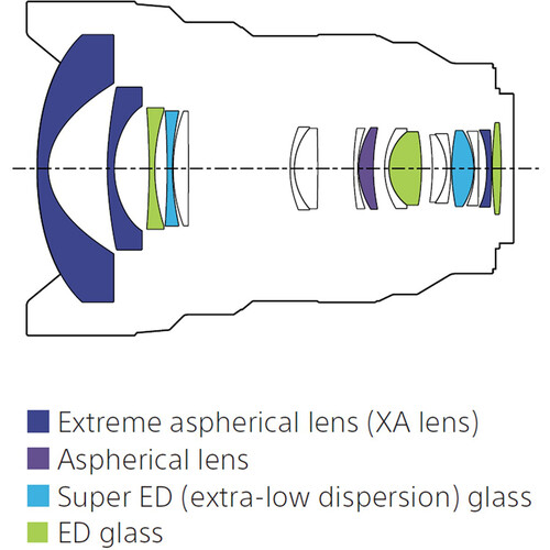 سه عنصر XA (فوق العاده کروی) و یک عنصر غیر کروی استاندارد در طراحی نوری گنجانده شده است که از ویژگی های دقت سطح برتر برای کنترل موثر بر آستیگماتیسم ، انحنای میدان ، کما ، اعوجاج و سایر انحرافات کروی برای درجه وضوح بالا و دقیق برخوردار است.