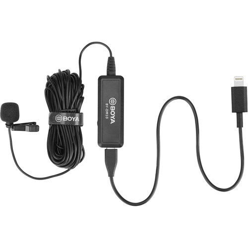 میکروفن یقه ای بویا BOYA BY-DM10 دارای کابل 6 متری به همراه رابط صوتی دیجیتال با خروجی 3.5 میلی متری هدفون ، دارای پورت خروجی Lightning برای آیفون ، خروجی USB Type-A برای لب تاپ